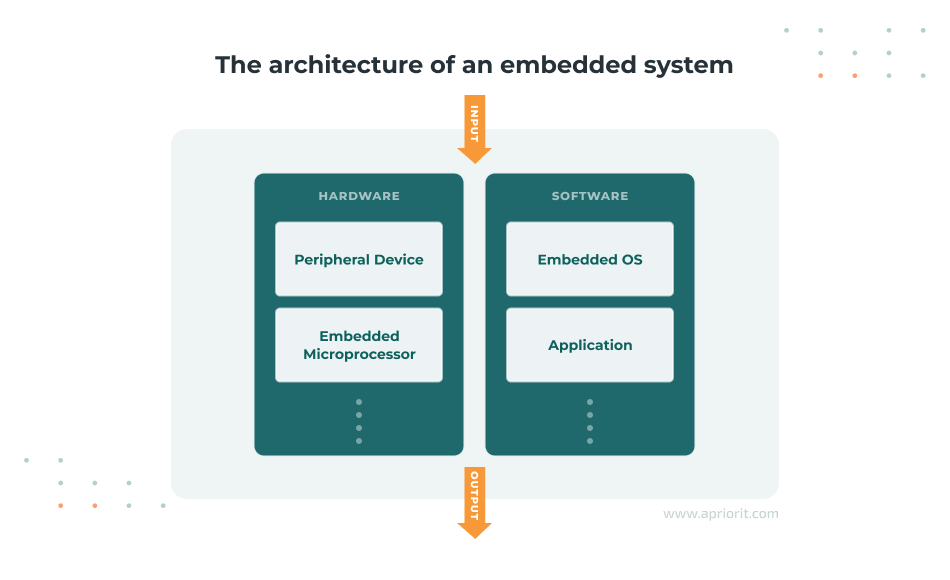 Generally, an embedded system consists of a CPU, memory, and a peripheral device. In modern systems, those are united into a microcontroller or a microprocessor. An embedded system is governed by integrated software that determines the behavior of the embedded devices. Usually, developers can interact with embedded software via a user interface, but systems with severe hardware limitations may not support this.
