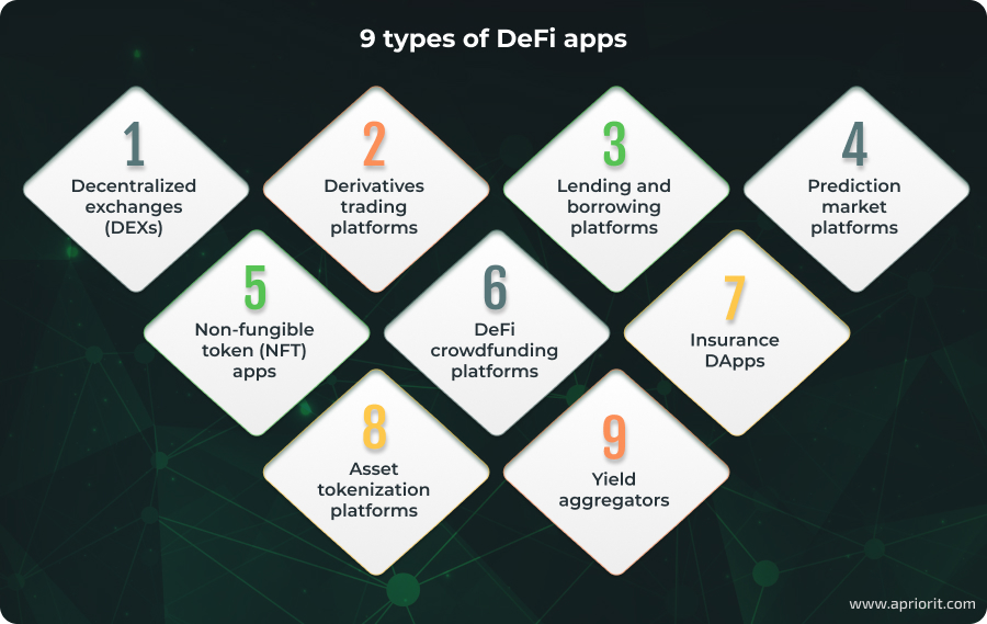 If you are considering developing a custom DeFi app, it’s vital to define exactly what result you want to achieve. In the next section, we examine types of DeFi apps.