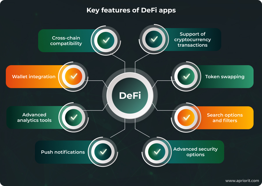 Since the choice of features you want to implement will depend on the type of DeFi app you want to build, we will focus on key features that allow you to enhance the security, functionality, and user experience of any DeFi app regardless of its aim and target audience.