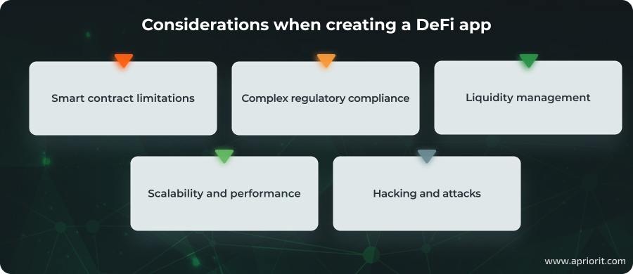 Before moving to DeFi app development, it’s important to know what obstacles you may face while building your DeFi product and how to overcome them.