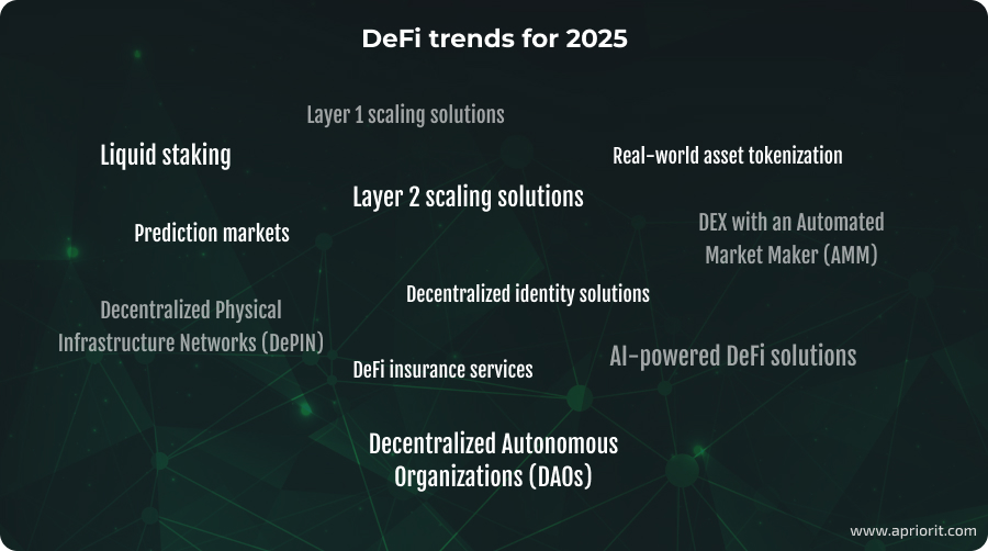 Along with the challenges, you also need to consider new tendencies in the DeFi market. Let’s take a closer look at the trends in 2025.