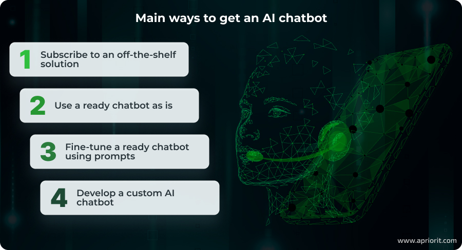 There are three main approaches to getting an AI chatbot:
