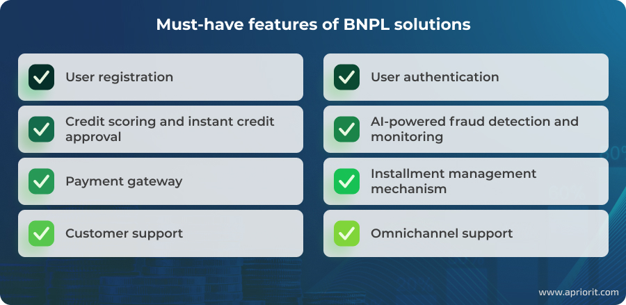 Every solution needs a definite set of features to fulfill basic operations and get the expected result. Essential features of a BNPL solution that you should definitely consider adding include:
