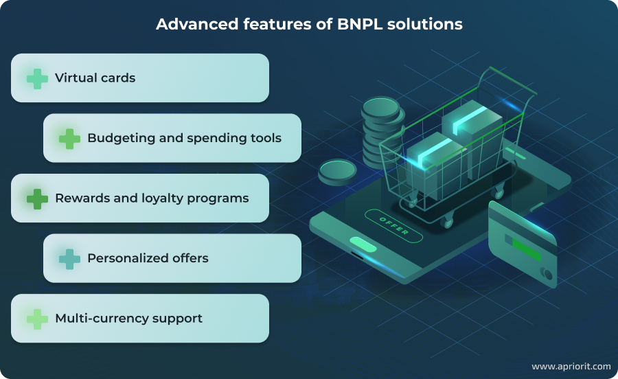 When aiming to raise customer loyalty and enhance competitive advantages, you can also combine basic features with nice-to-have ones. The most popular advanced BNPL features include: