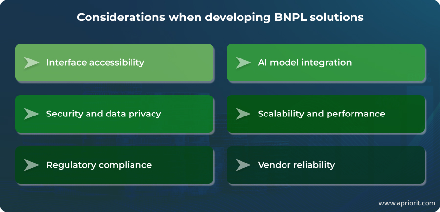 Moreover, when planning to develop a custom Buy Now Pay Later solution, you need to consider multiple aspects: